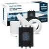 Boost cellular signal and stay connected with Fusion Professional, the most powerful residential cell phone signal booster for mid-size buildings that provides strong, reliable connections in areas up to 8,000 sq. ft. This cellular network booster is designed for large homes and offices in the weakest signal areas. It significantly improves 5G/4G LTE connectivity for all North American cell carriers with built-in 2XP technology that doubles uplink transmission power to maintain the cellular connection to the tower even at the fringe of the cell network. Designed, assembled, and tested in the USA with outstanding build quality, award-winning technologies, all-carrier compatibility, and world-class support, the Fusion Professional is the premier cell phone signal booster for large residences. Kit includes the high-performance Fusion Professional 50 Ohm amplifier, low-loss SC-400 coax cable (50 ft), low-loss SC-240 coax cable (20 ft), outdoor high-gain Yagi antenna, indoor high-gain panel antenna, and quick install guide.
